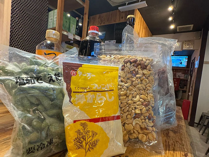 味噌、醤油、みりん、砂糖、塩、酢、塩こうじ、乾物、冷凍食品、缶詰